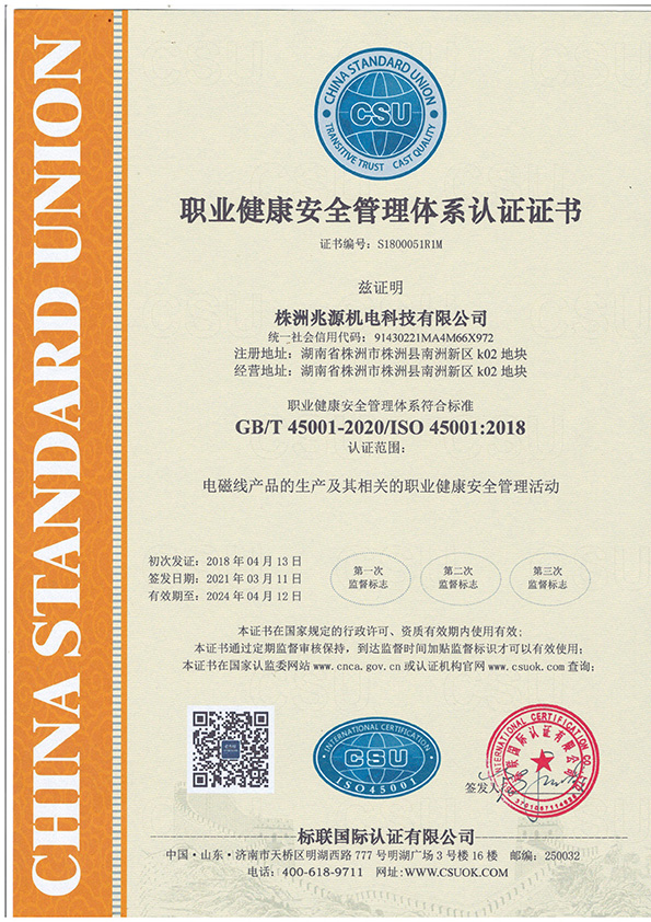 職業(yè)健康安全管理體系認(rèn)證證書