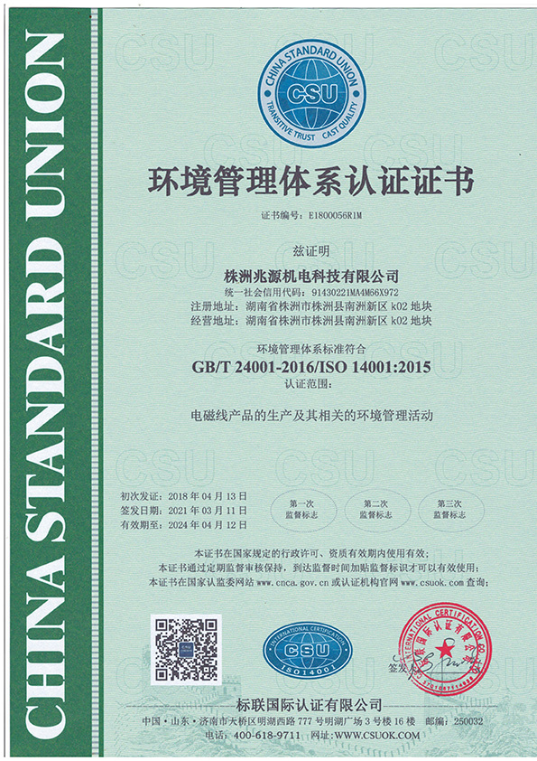 環(huán)境管理體系認(rèn)證證書